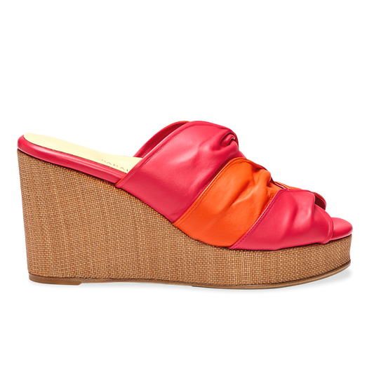 • Perfect Arabesque Wedge 80 in Two-Tone Camel Nappa & Woven Wedge Perfect Arabesque Wedge 80