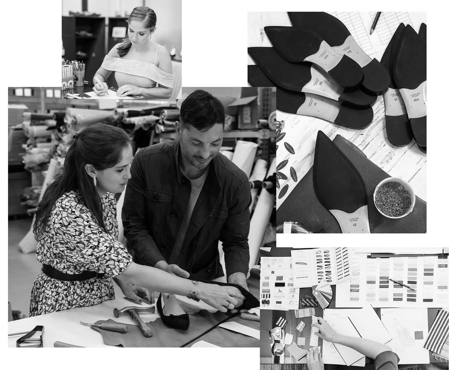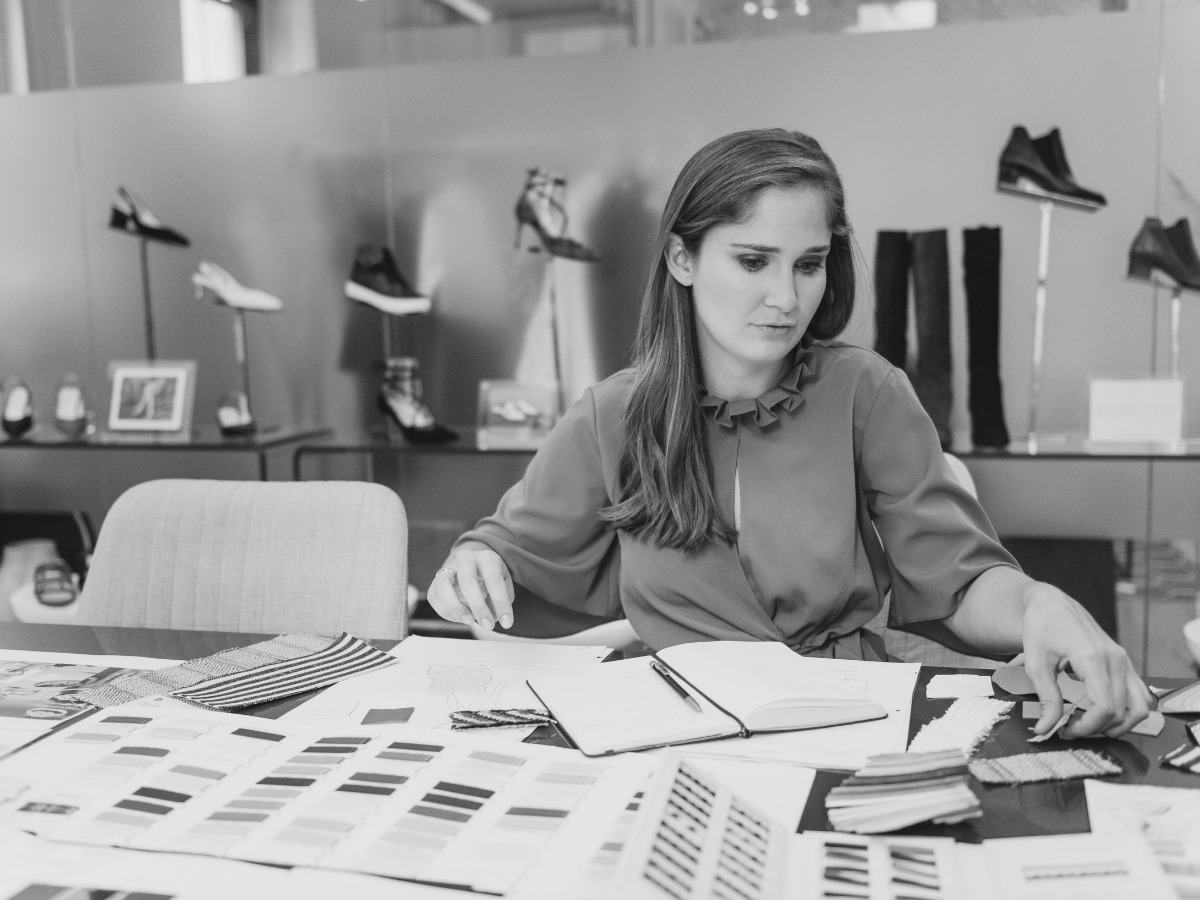 Each collection begins with inspiration drawn from travel, art, architecture, and the women Sarah dresses. The design then moves through sketch, prototype, and direct customer feedback before it reaches production. Sarah launched her namesake label at age 25 with the ambition to create shoes that are as considered in construction as they are in design, integrating structural support into sleek, enduring silhouettes.