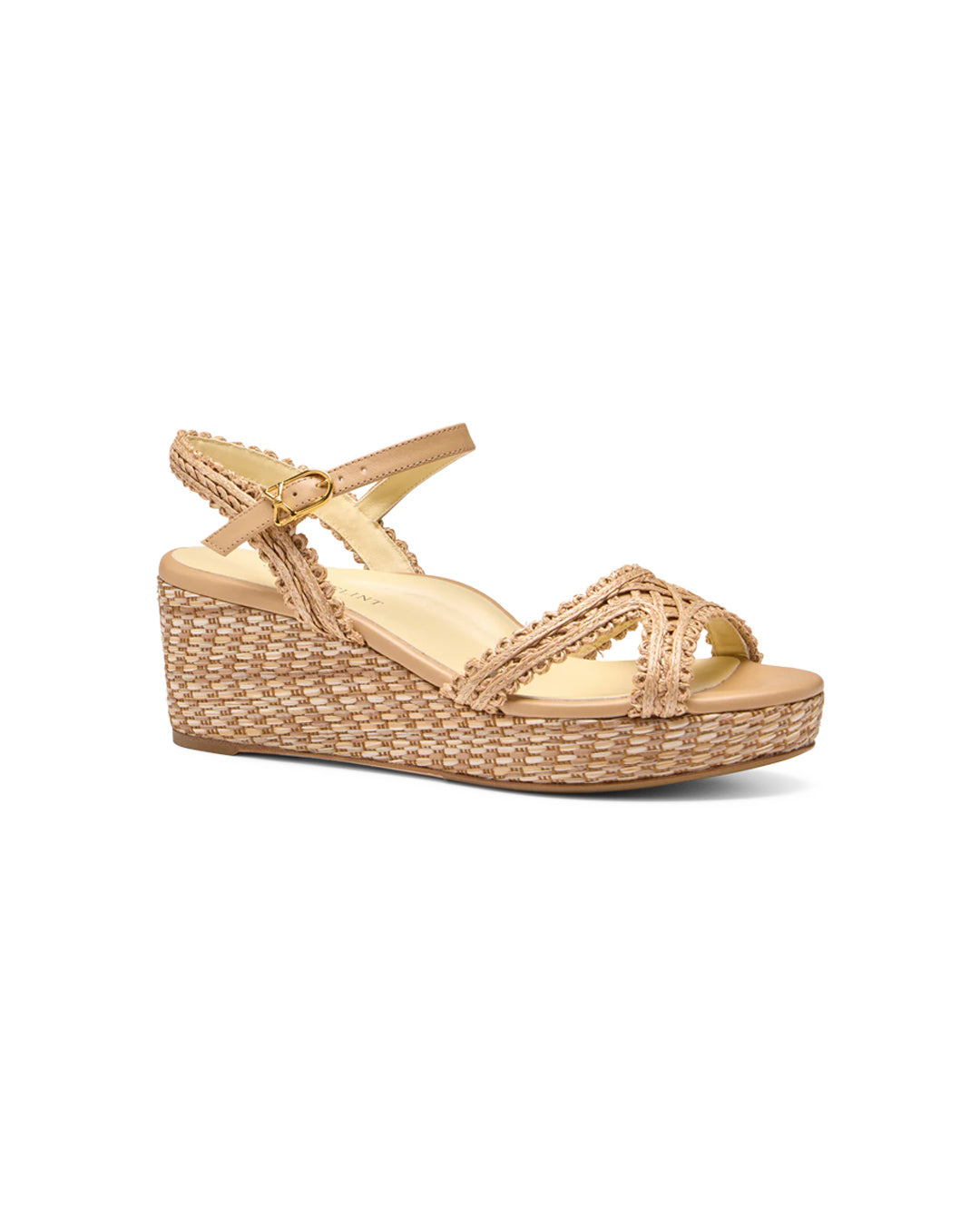 Who says neutral should play it safe? The Perfect Mirjana Wedge 80 in Saddle elevates this tonal look with unexpected texture and confident height. Think voluminous stripes, sculptural gold accents, and sun-kissed linen.