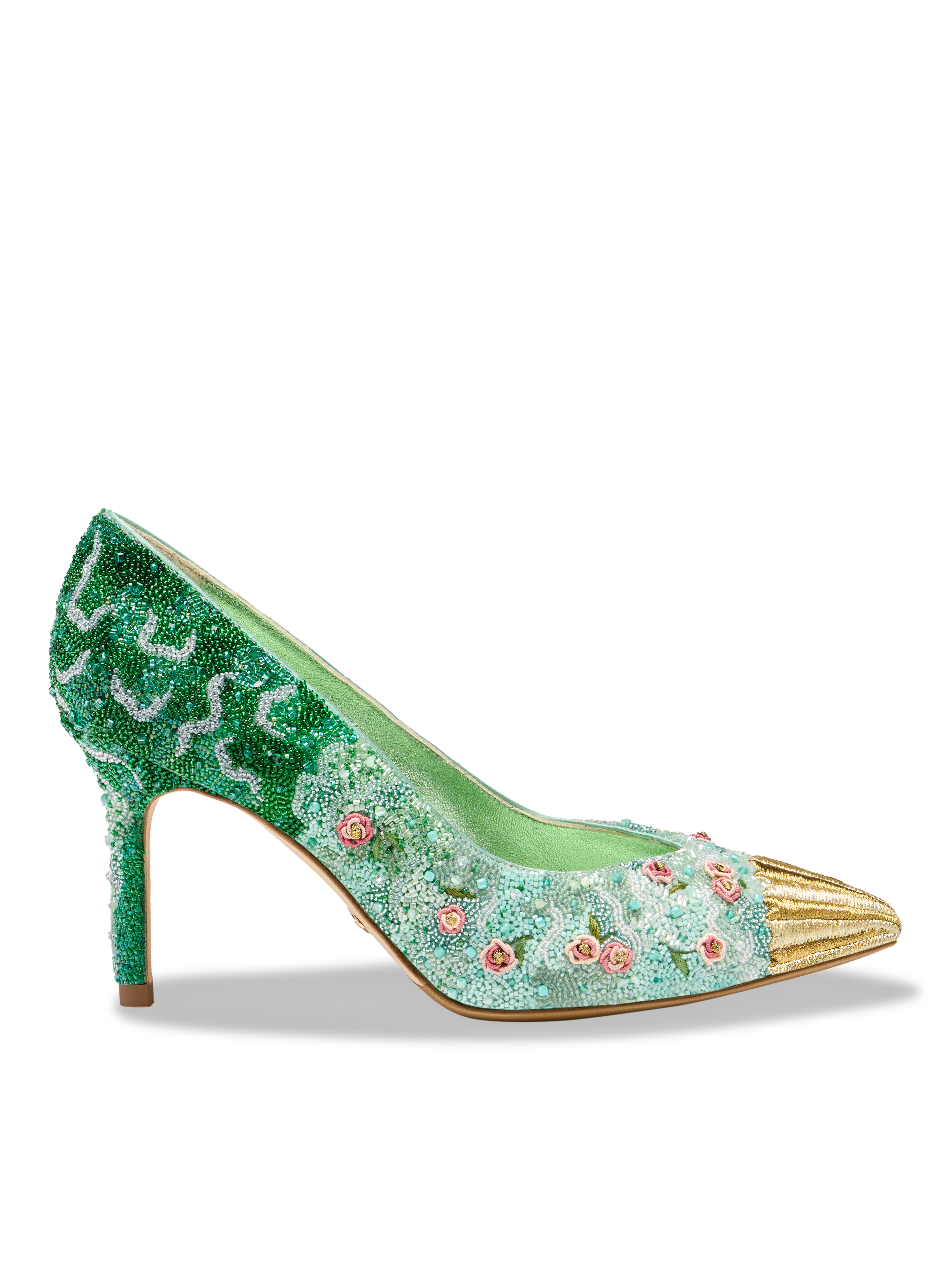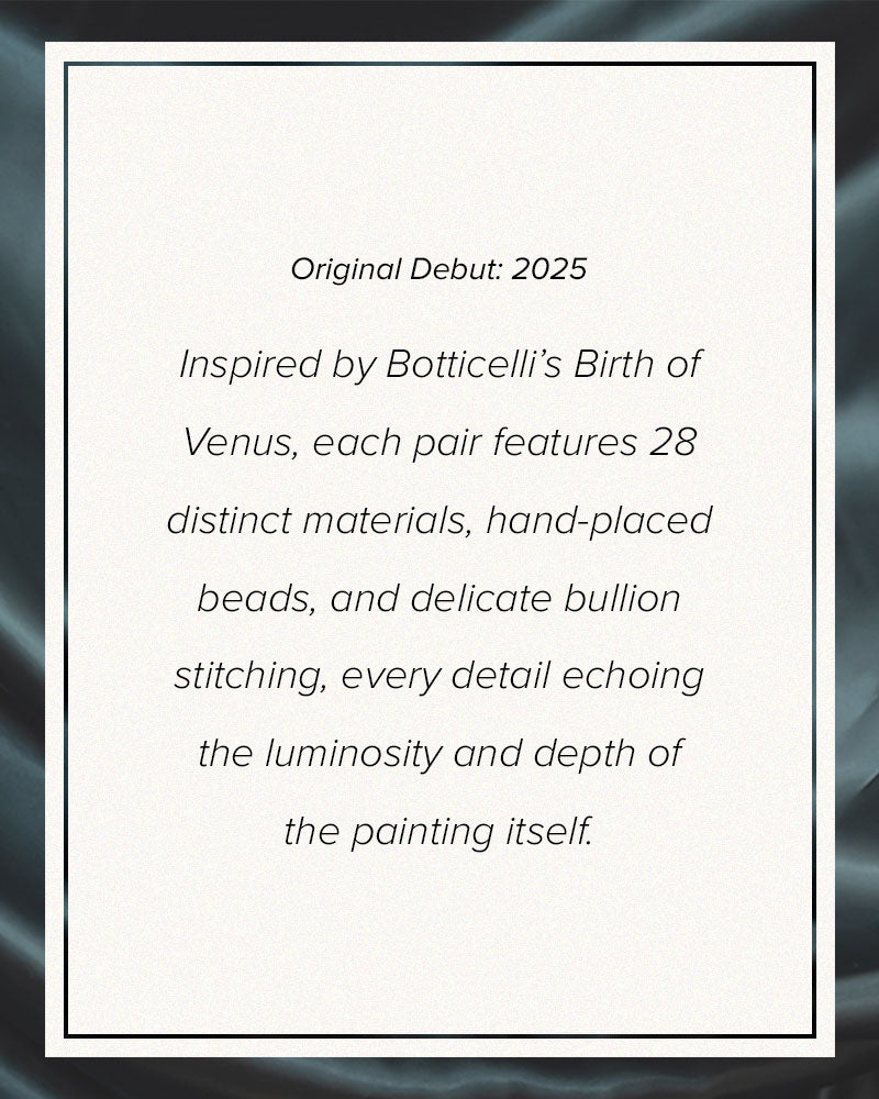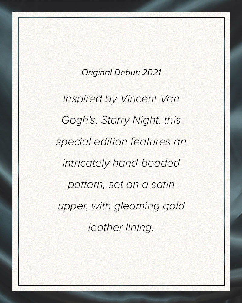 Inspired by iconic paintings—from Klimt’s Woman in Gold to Monet’s Water Lilies—these beloved styles return for an exclusive, made-to-order release. Hand-beaded and gallery-worthy, each pair transforms our Natalie Flat into a collectible work of art. And for the first time ever, our bestselling Perfect Pump 85 joins the collection, available across all featured artworks.