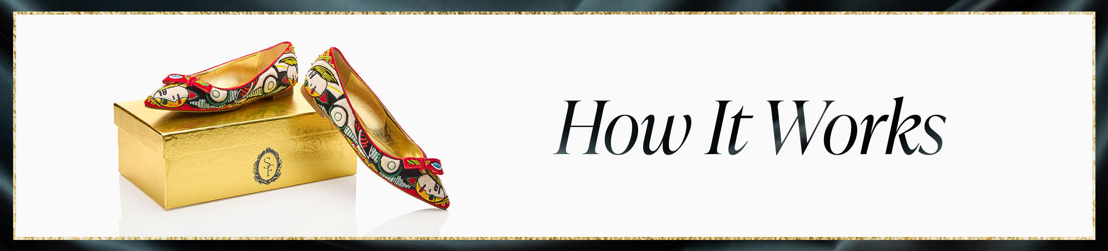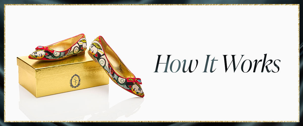Your one-of-a-kind shoes arrive in our exclusive gold box, designed to be as special as what’s inside.