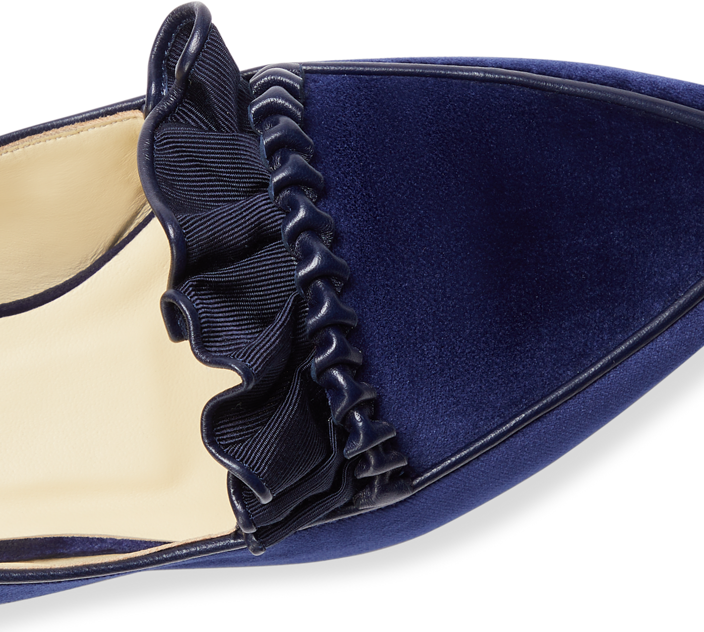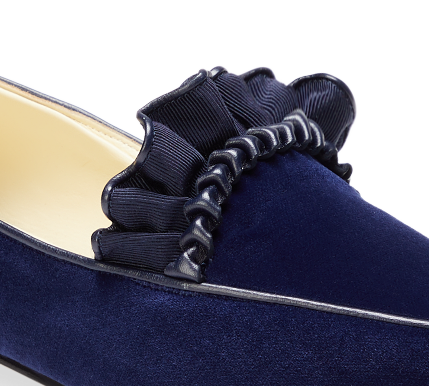 Grosgrain ruffle at vamp
