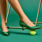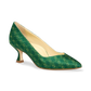 From the stunning collaboration with social impact fine jewelry brand Shiffon: the Perfect Kitten Pump 50 in green geometric jacquard.