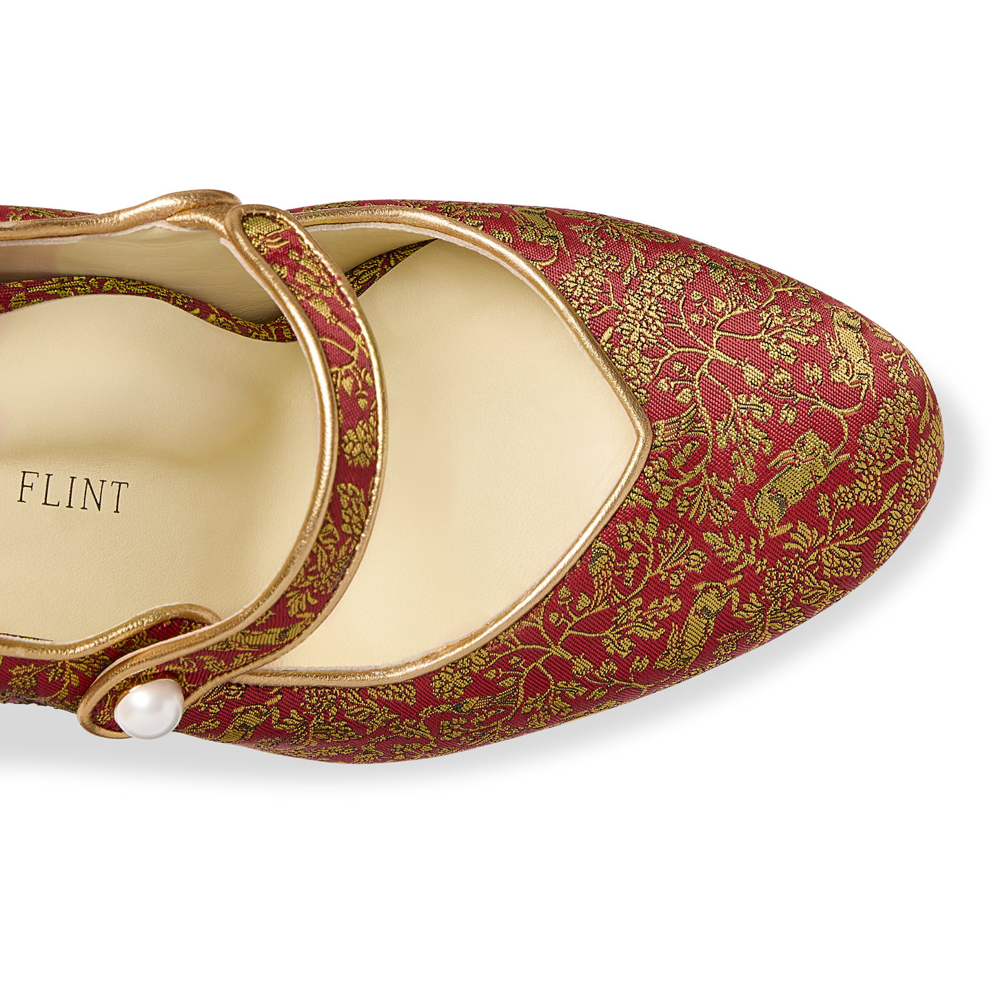 Inspired by Vienna's Schonbrunn Palace, this pump features ornate florals that evoke jewel-tone furnishings and brocade-covered walls. For an opulent finishing touch: a decorative, pearl-like button as if plucked from a regal wardrobe.
