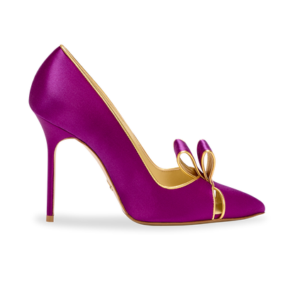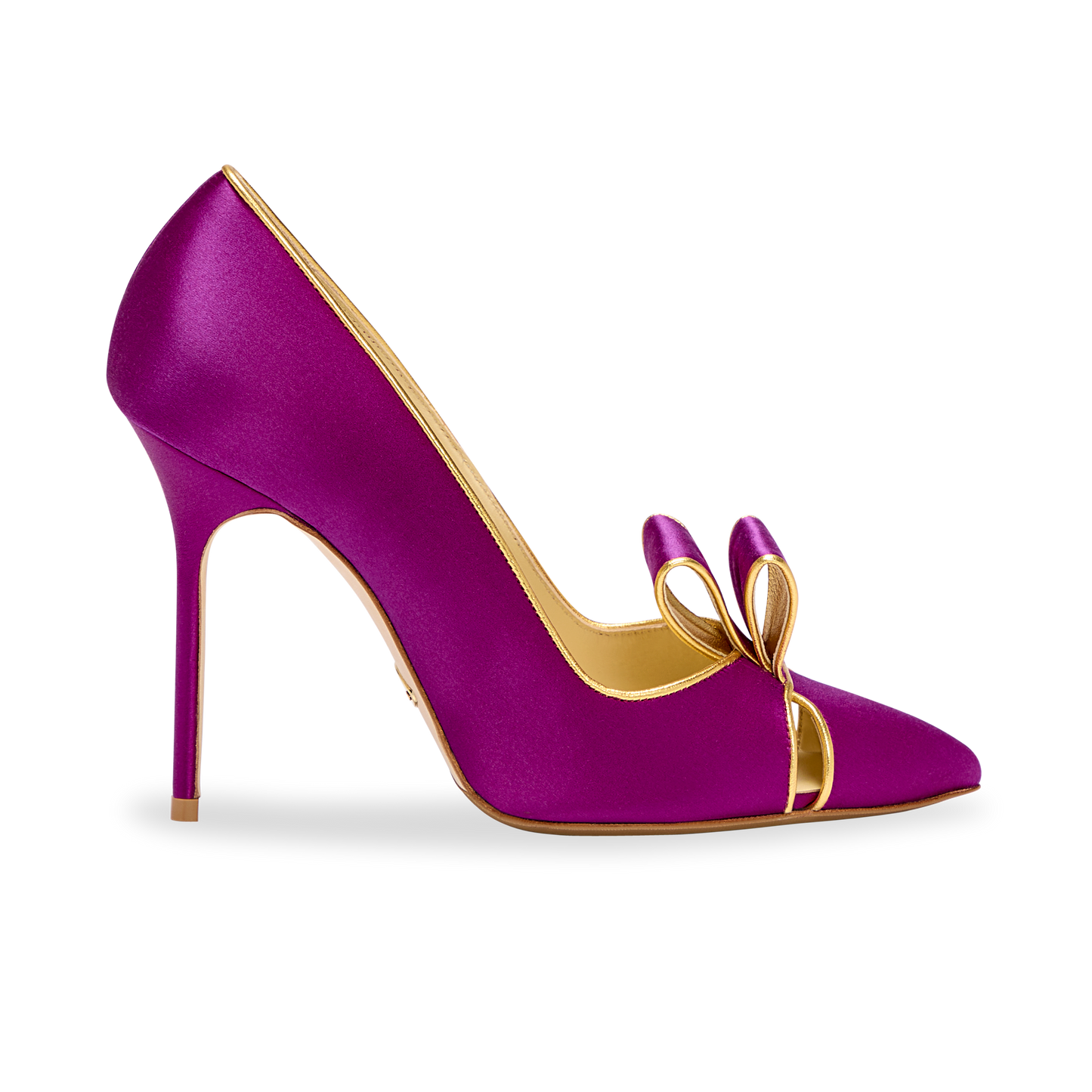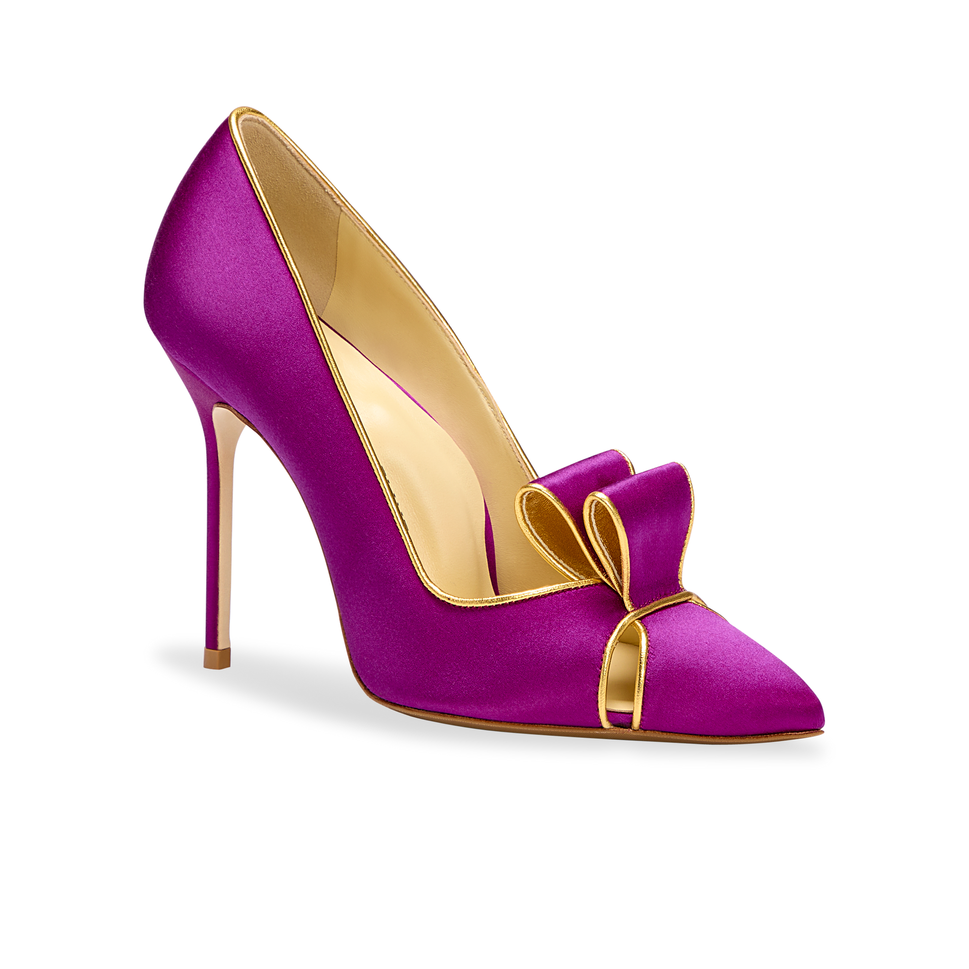 Wedding season standouts: 100mm cutout pumps in striking fuchsia satin.