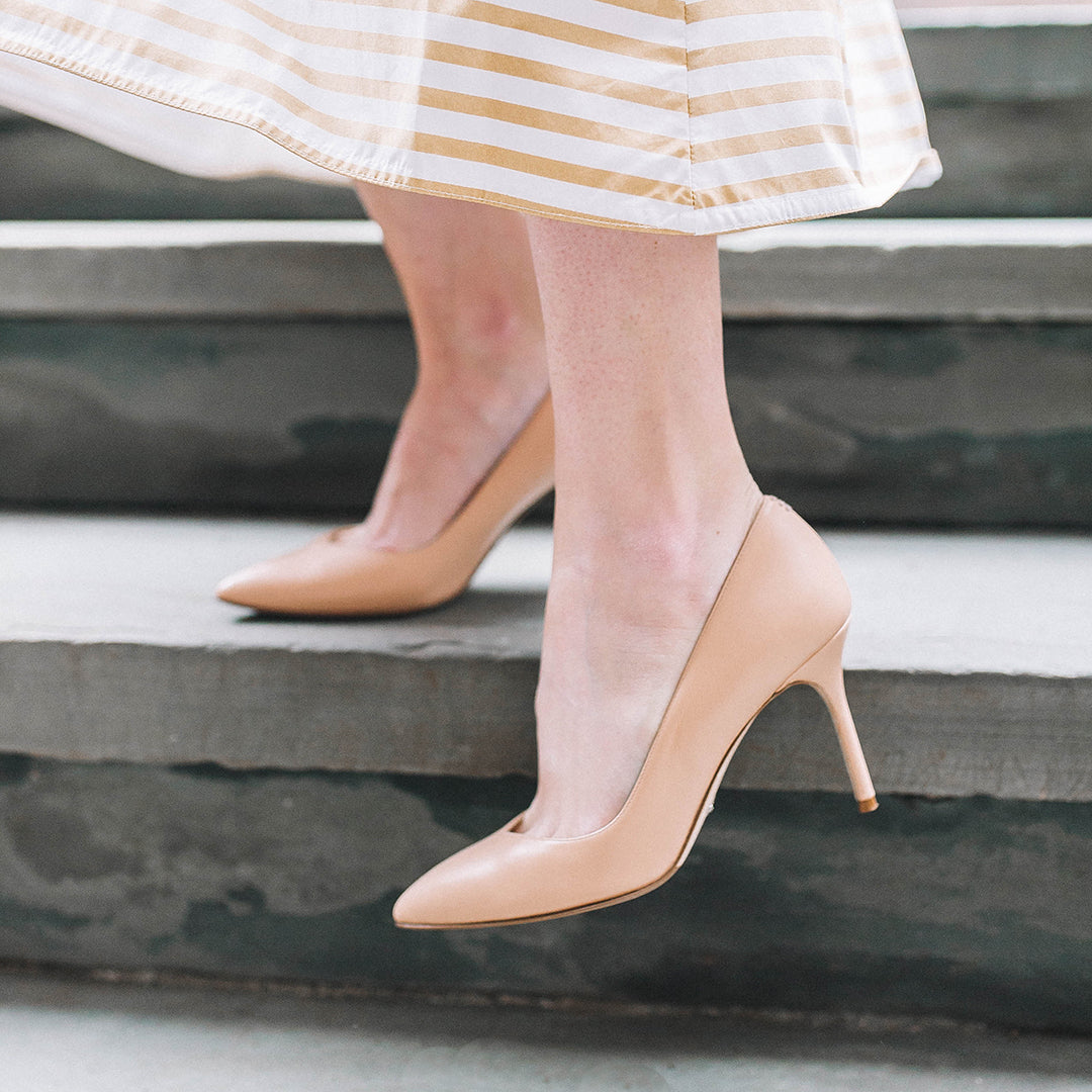Part of the exclusive Perfect Collection, this iconic #1 bestseller is a celebrity favorite, seen on stars like Lady Gaga, Margot Robbie, and Oprah. With a timeless 85mm stiletto heel in luxurious sand calf, the Perfect Pump 85 combines high fashion with unparalleled comfort. Designed with anatomical arch support and extra footbed padding, it ensures all-day comfort without sacrificing style. Whether you're making a statement at an event or conquering your workday, this stiletto is the ultimate versatile choice.