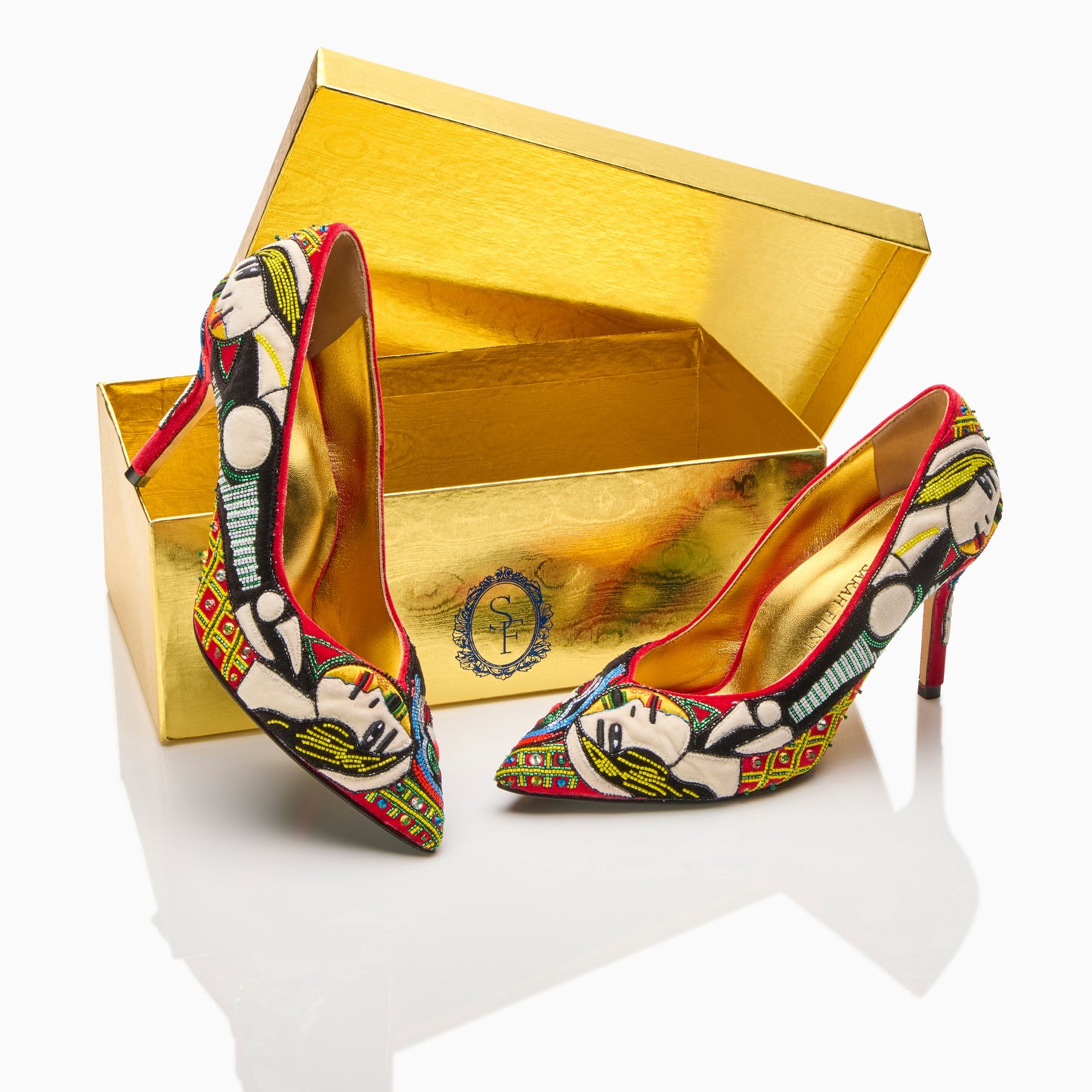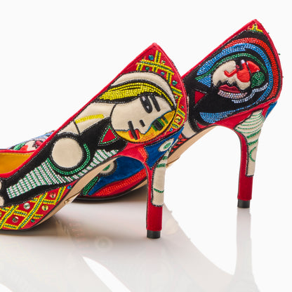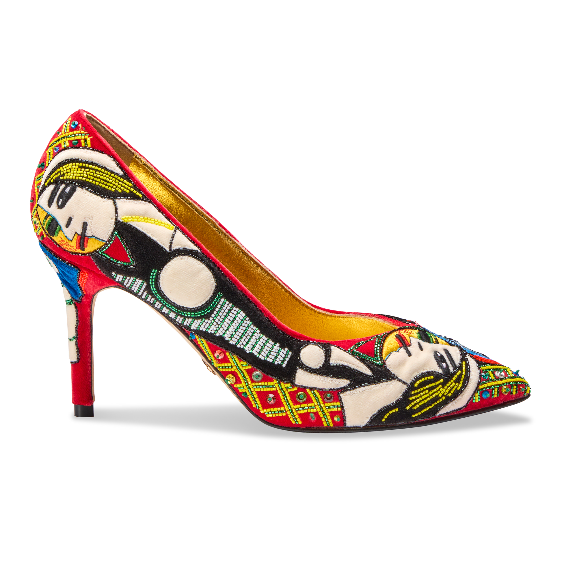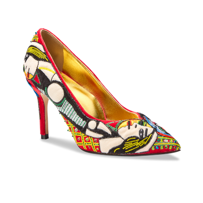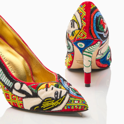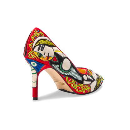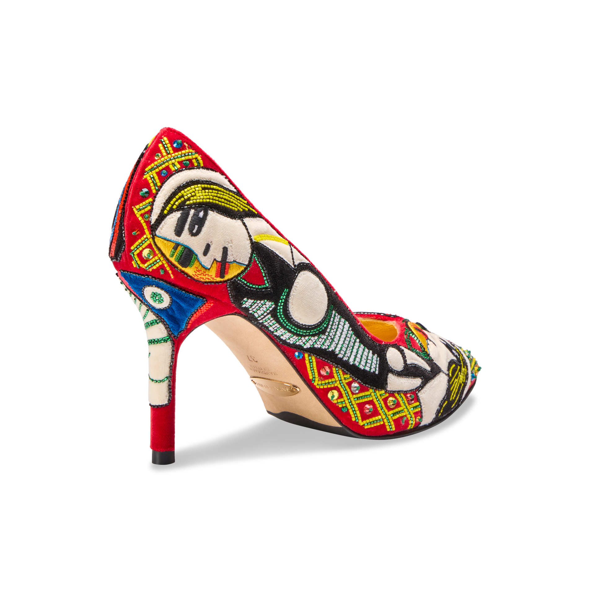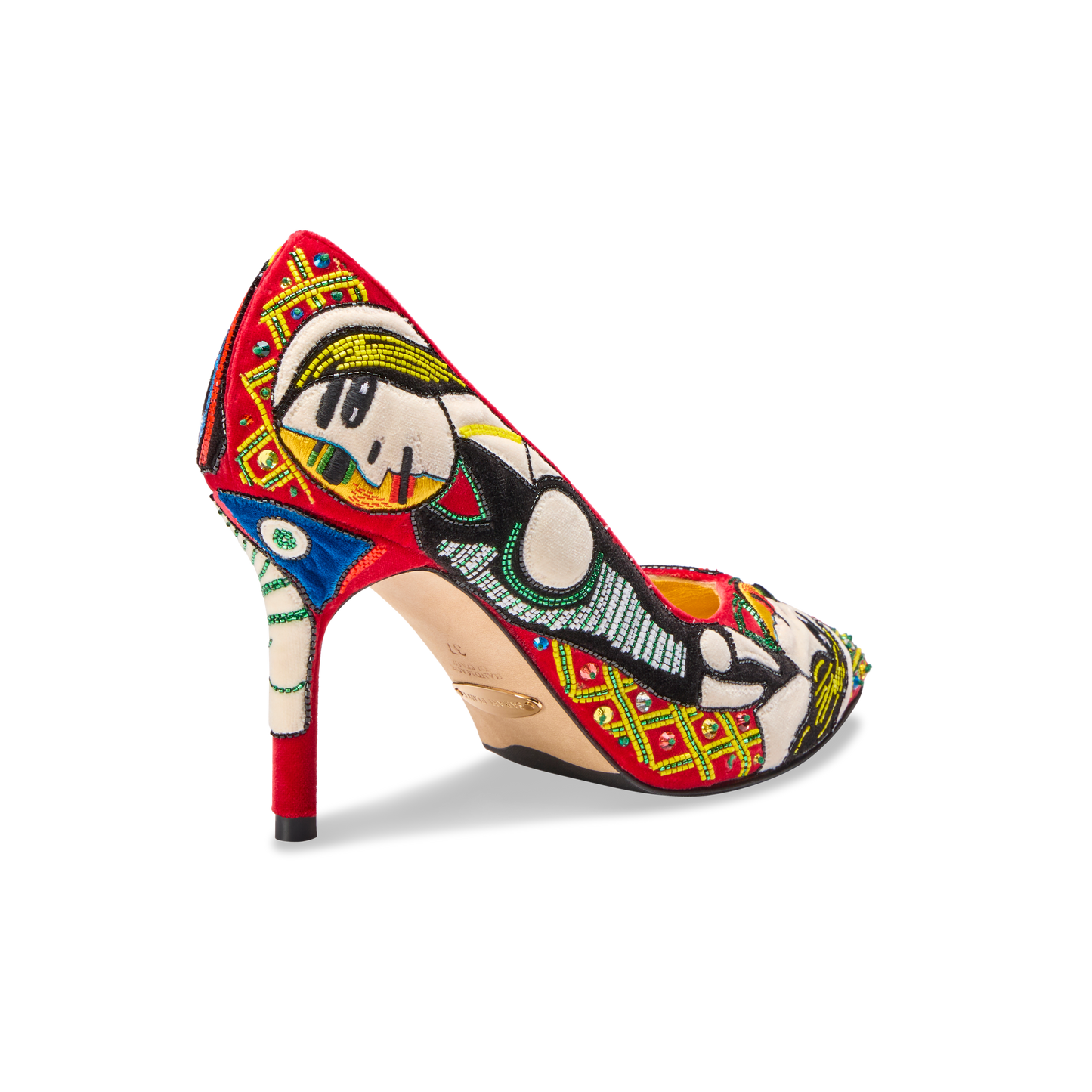 Introducing the limited edition Perfect Pump 85, part of our Perfect Collection, blending timeless design with modern, comfort-driven features. Inspired by Picasso's Girl Before a Mirror, this is the first artist-inspired Perfect Pump. Crafted from luxurious velvet and adorned with intricate beadwork, vibrant shapes and colors come together to create a true work of modern art. Each pair requires 96 hours of meticulous handcrafting, making it a one-of-a-kind statement piece. Perfect for art and fashion lovers alike.