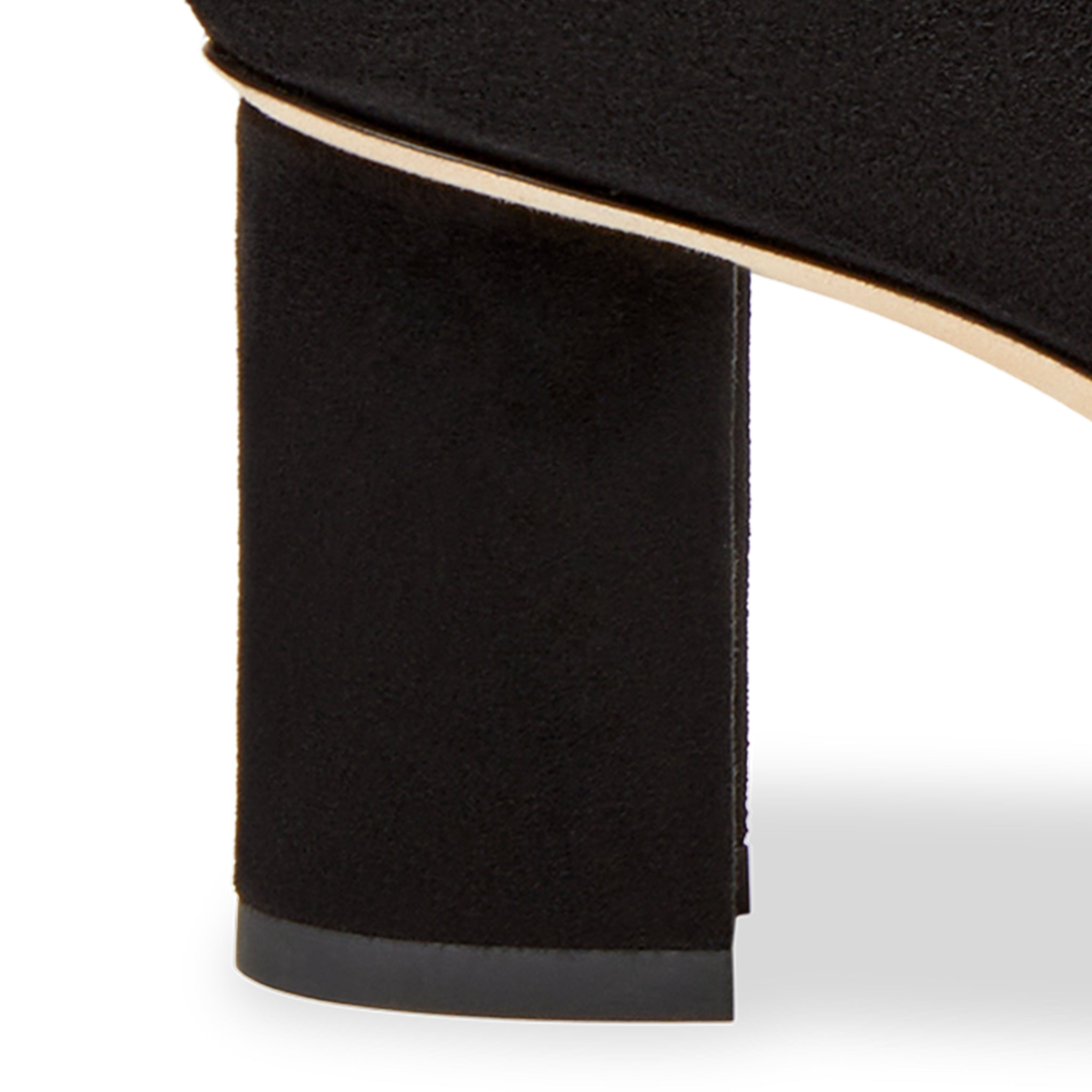 Inset placement provides height and length without the heaviness of a traditional block heel