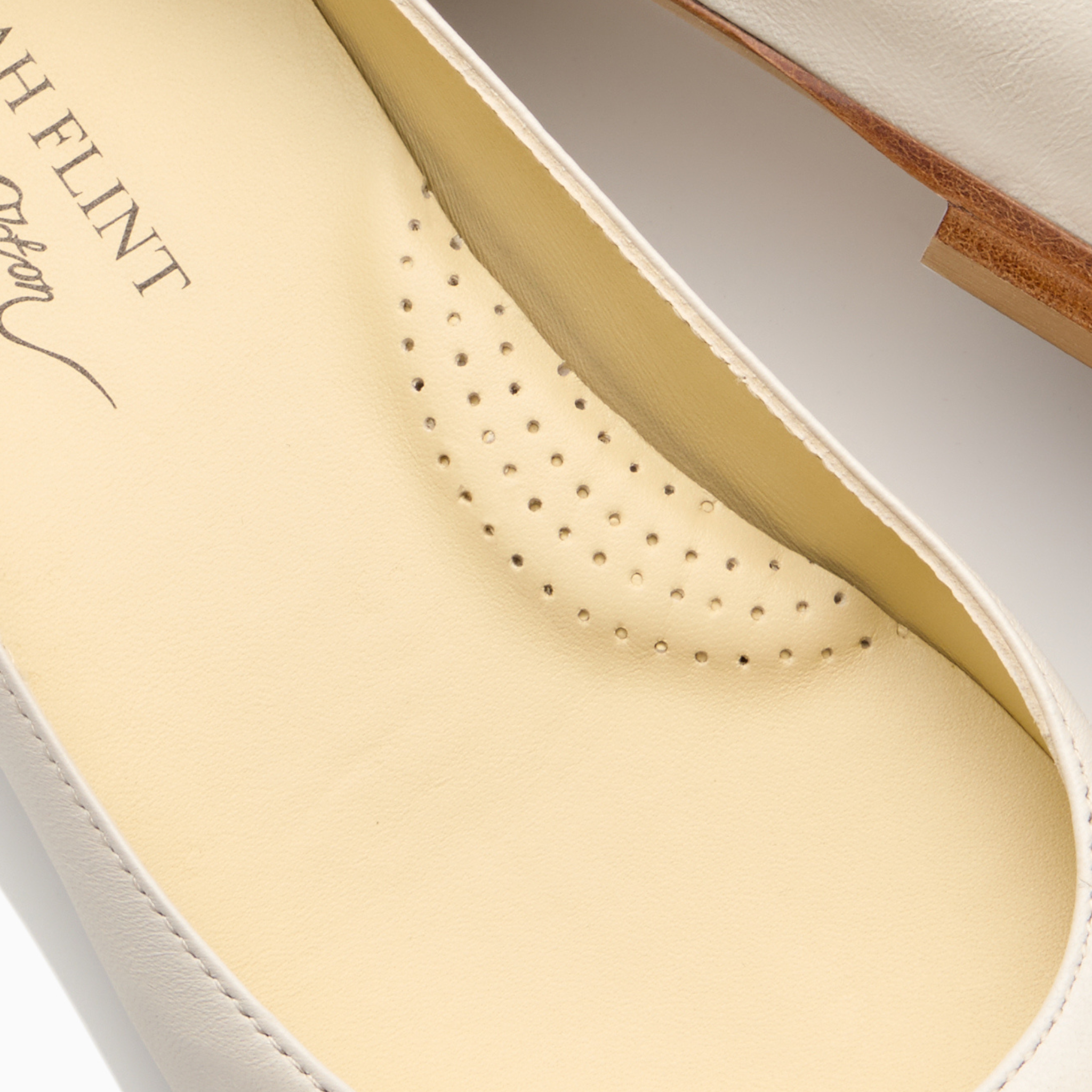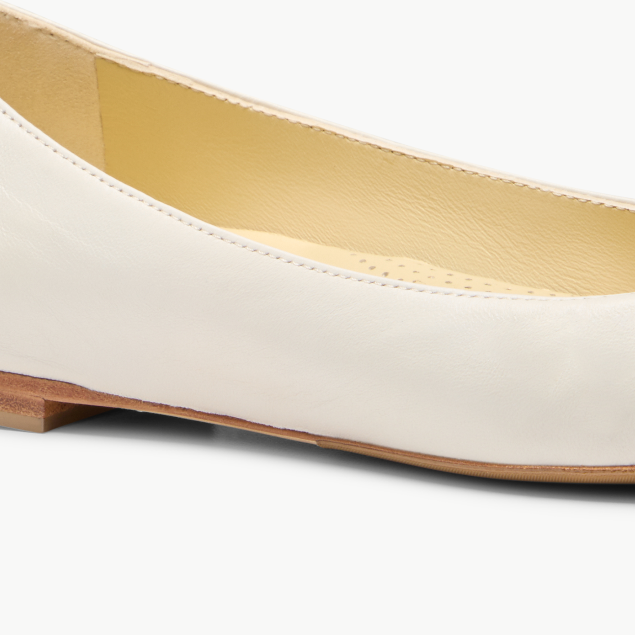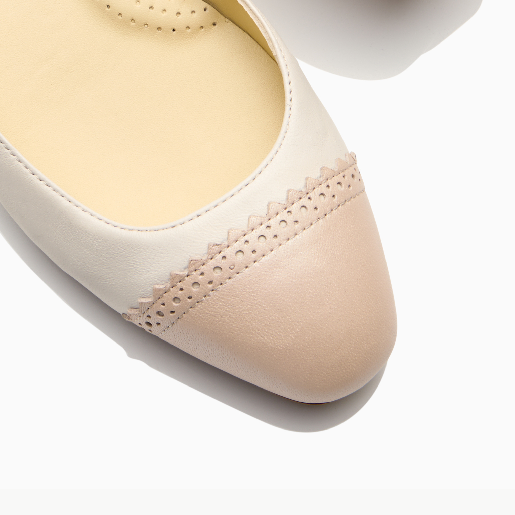 Exclusively part of the Sarah Flint x Mary Orton collaboration, the Perfect Cap Toe Flat marks the first-ever flat in our acclaimed Perfect Collection. Crafted in soft ivory nappa with a pearlized cap toe, it offers an elegant, feminine twist on a timeless silhouette. Built with sacchetto construction, it provides a flexible, glove-like fit rarely seen in modern flats. Designed with the same signature comfort technology that made the Perfect Pump a cult favorite, it features arch support, extra padding, a roomier toe box, and a non-slip rubber sole. A removable insole allows customizable comfort (extra cushioning and arch support when you want it, or a sleeker fit when you don't) making this flat as stylish as it is versatile.