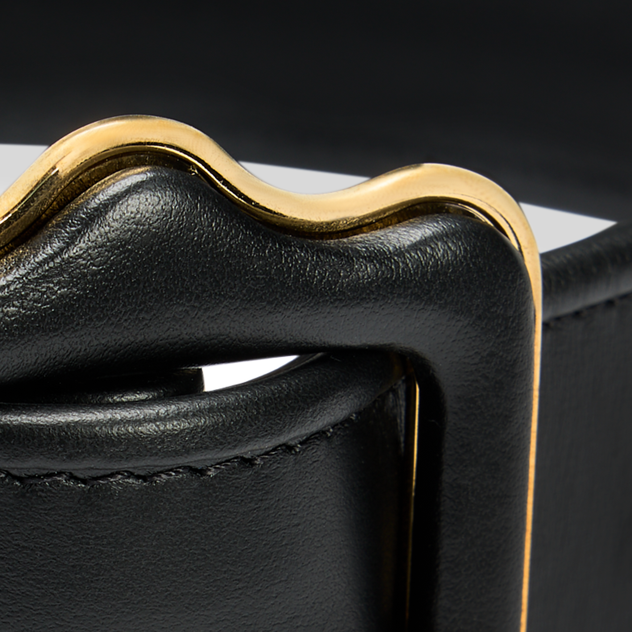 Buckle outlined in galvinized gold-tone hardware
