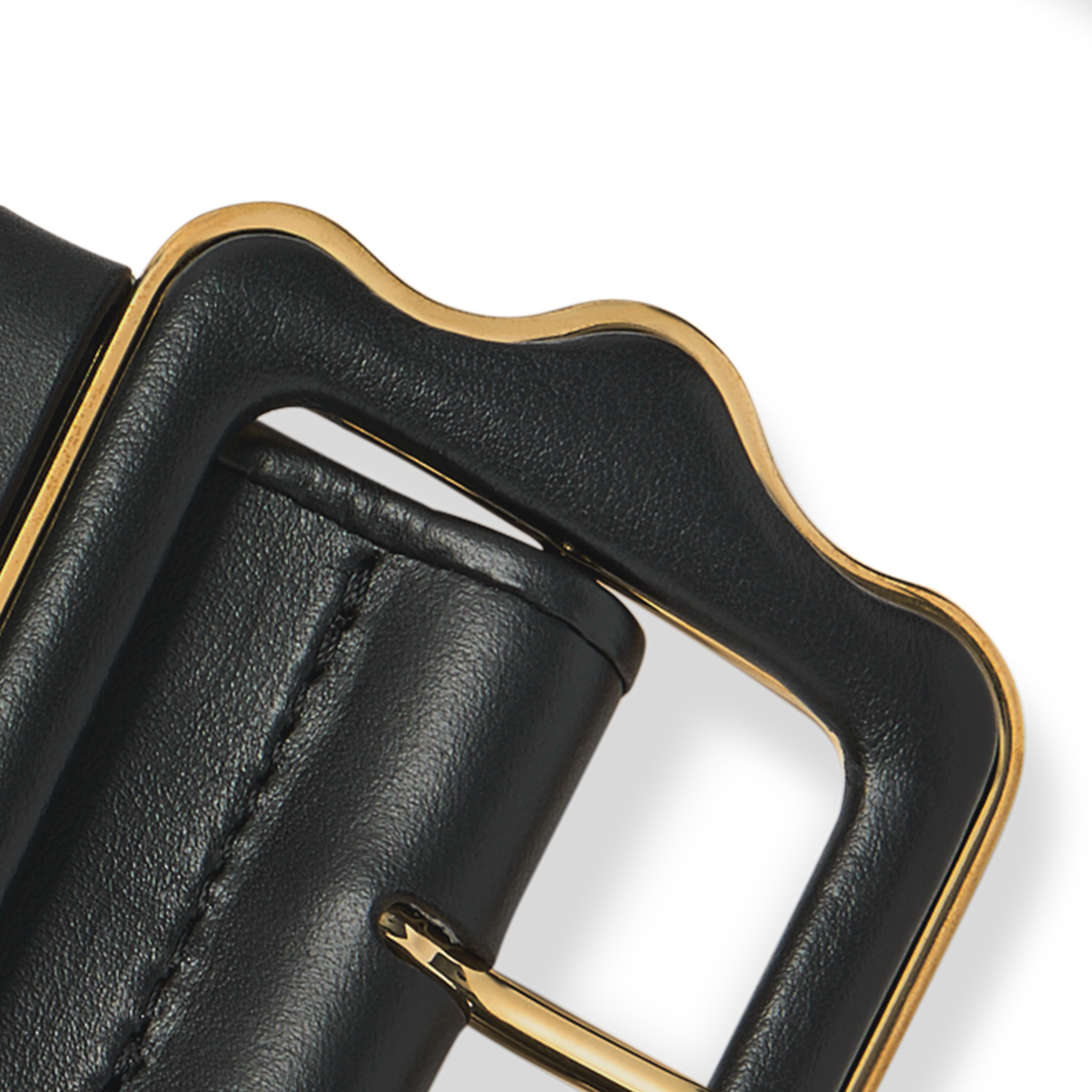 • Leather-covered buckle with scalloped edges