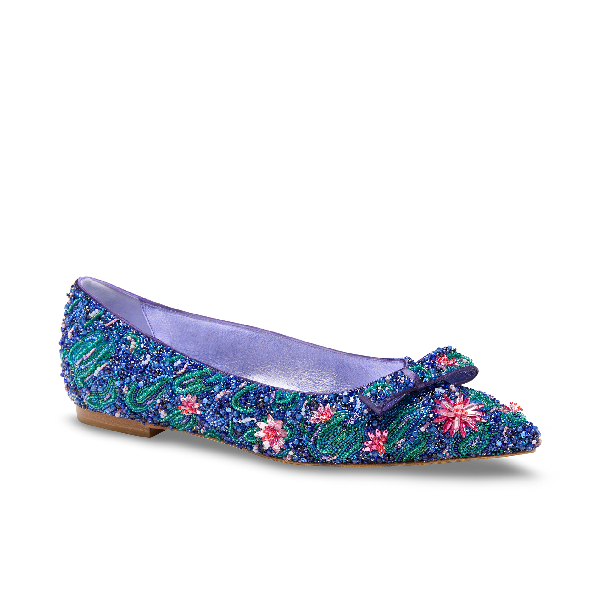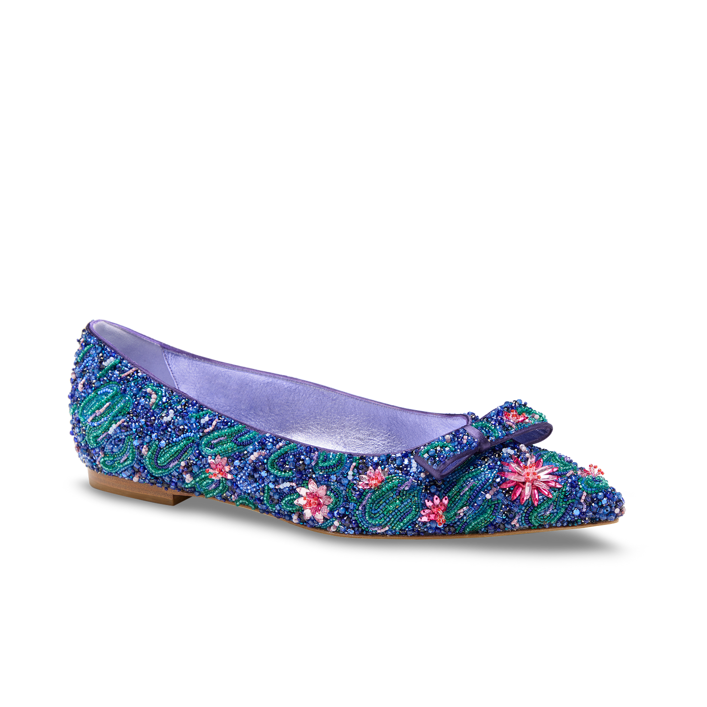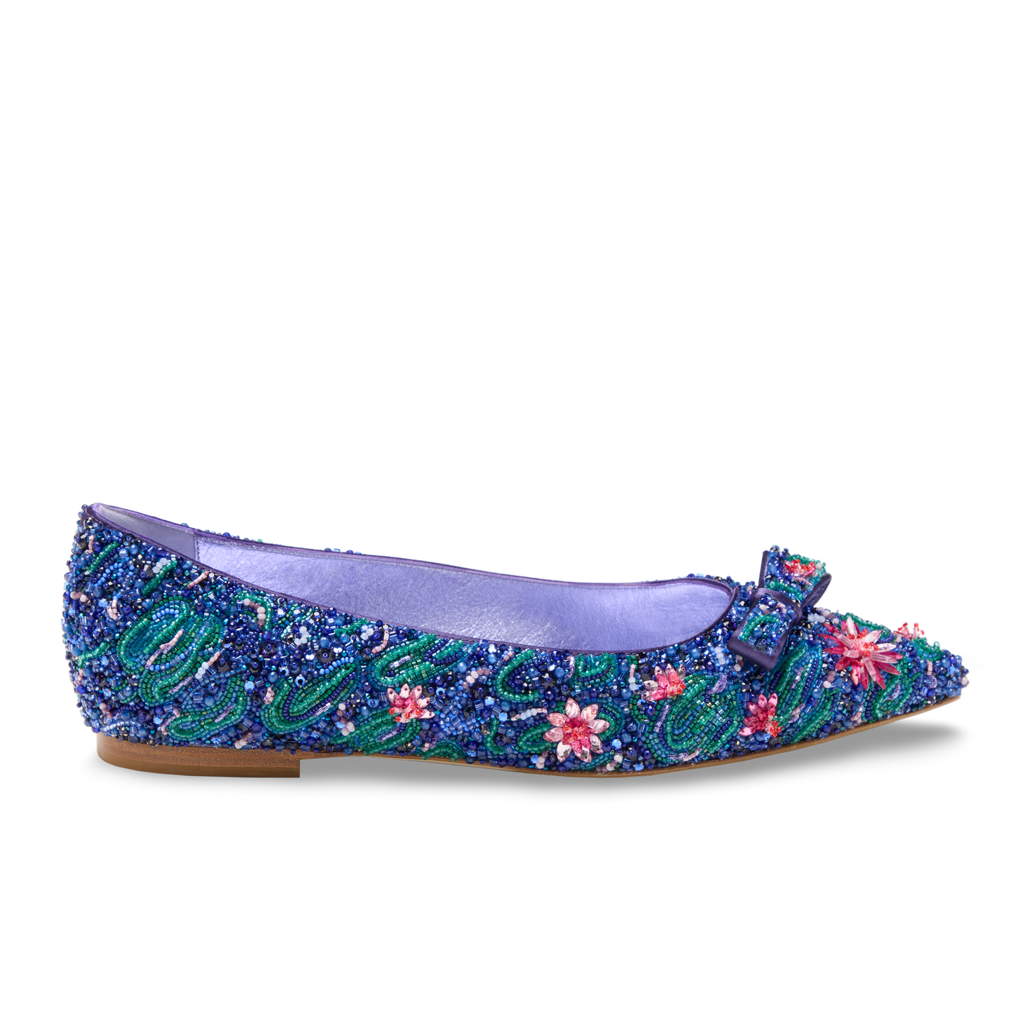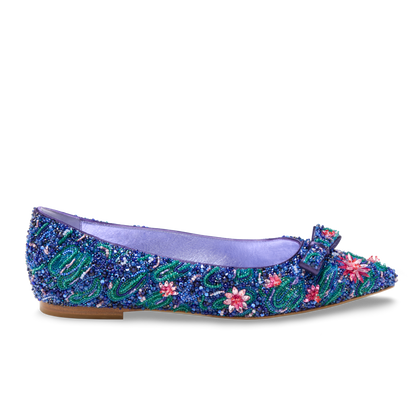 An homage to Claude Monet’s Water Lilies, this limited-edition Water Lily Natalie reimagines our best-selling ballet flat in soft, silk satin adorned with delicate floral embellishments. Featuring 41 different materials and requiring 75 hours of meticulous handwork per pair, it captures the serenity and layered beauty of Monet’s iconic series in a refined, wearable form.
